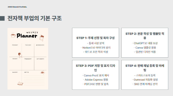 | STEP 3 | PDF 저장 및 표지 디자인 | Canva Pro, Adobe Express |